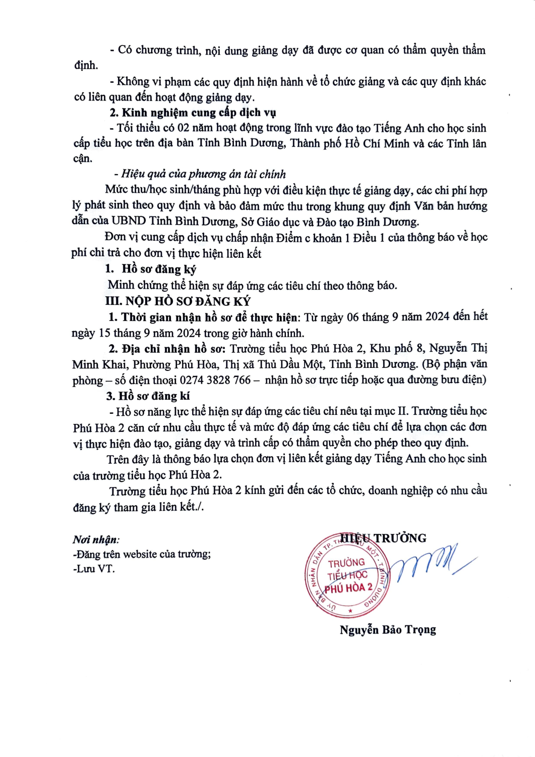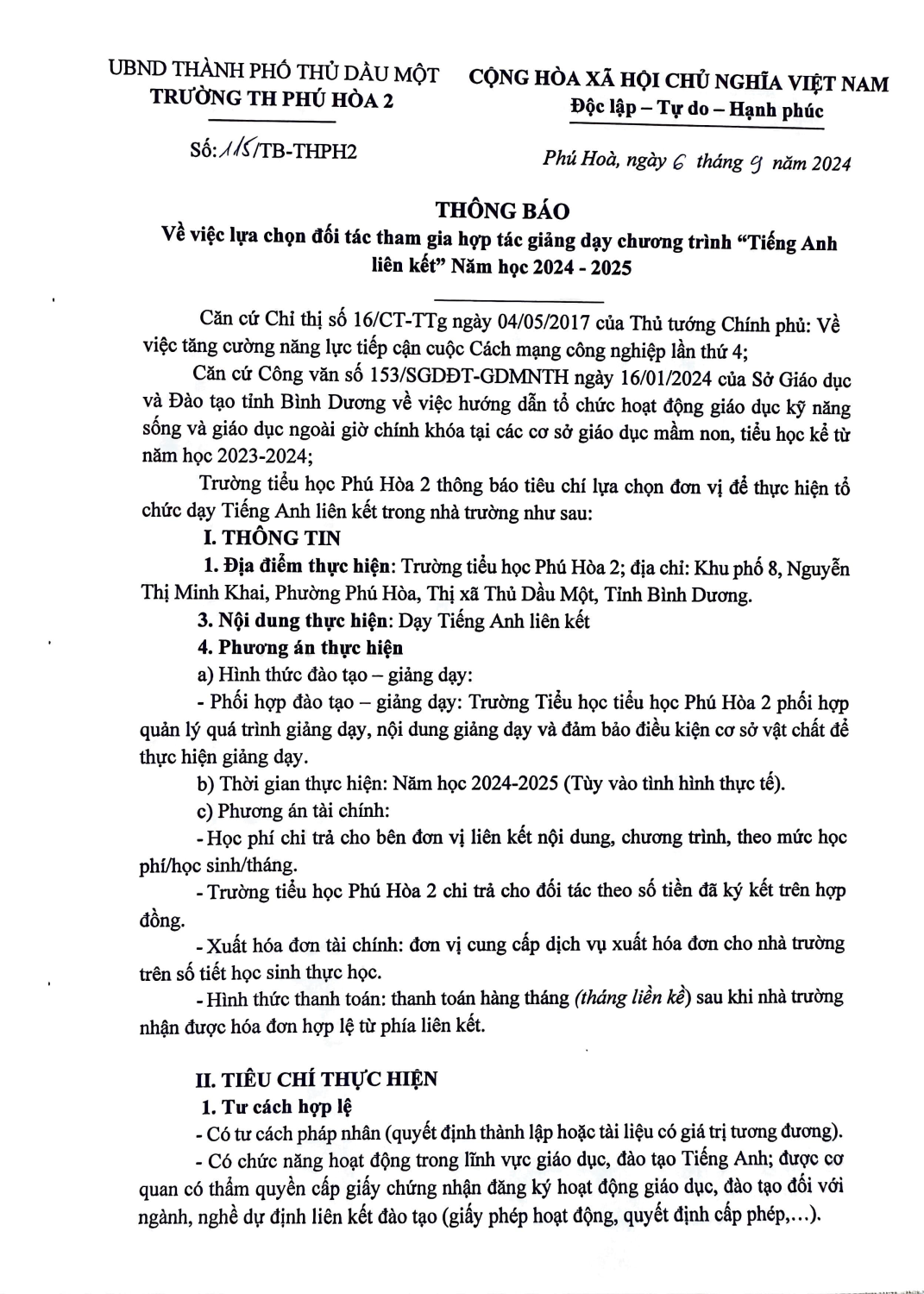 Thông báo lựa chọn đối tác tham gia giảng dạy Tiếng Anh