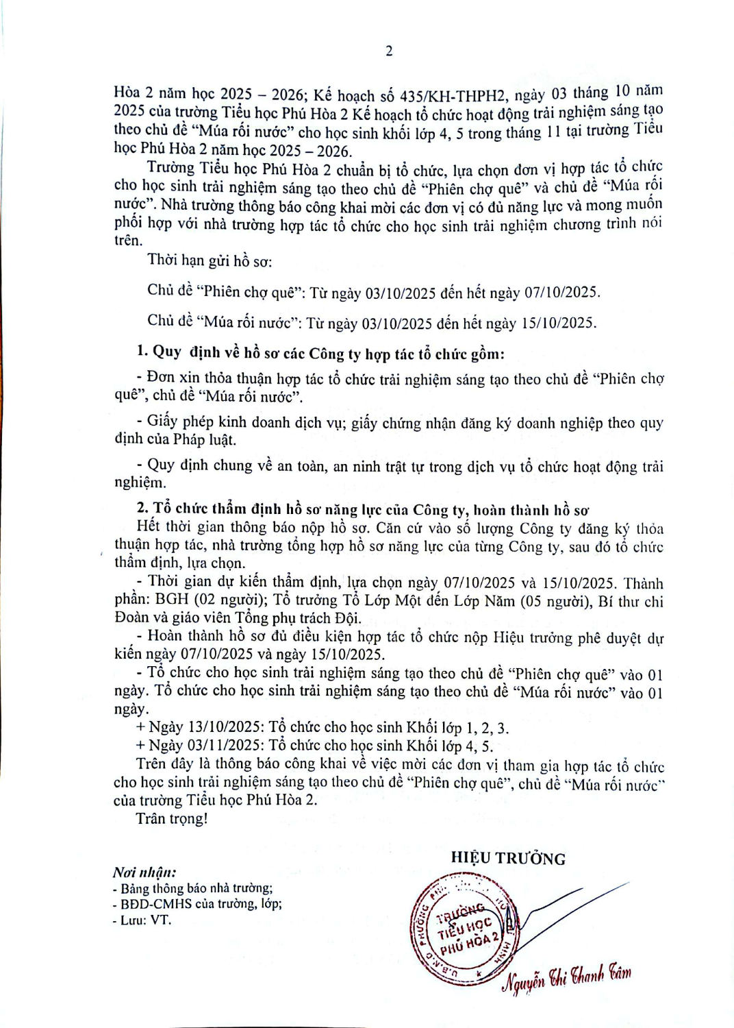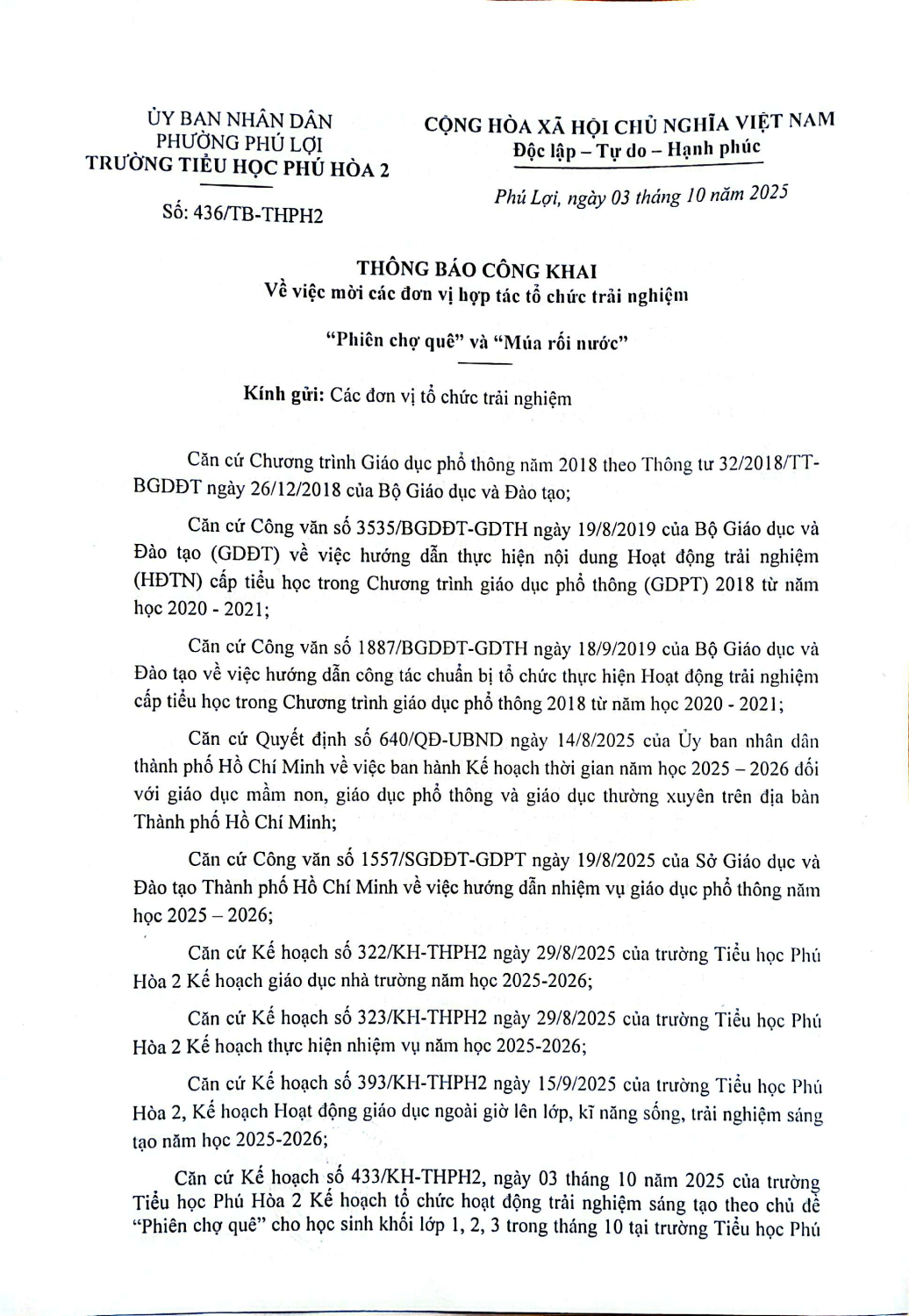 Thông báo mời các đơn vị hợp tác tổ chức trải nghiệm