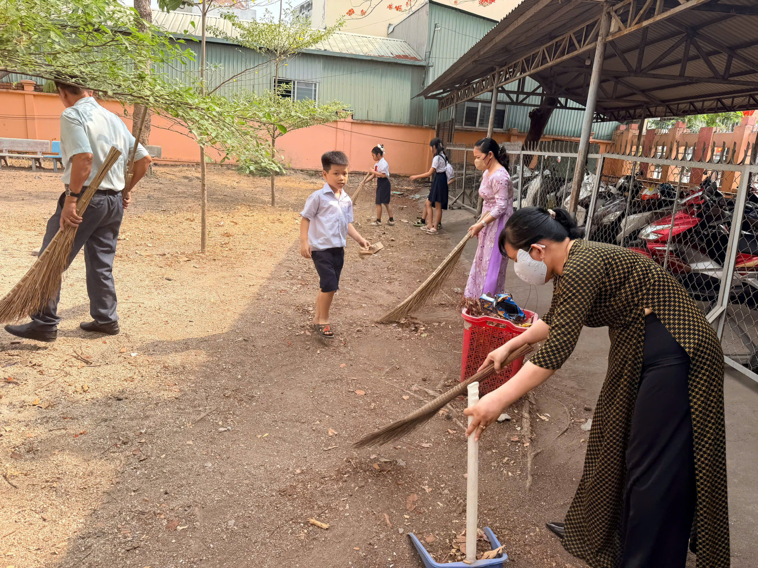 Trong buổi lao động, các lớp đã tiến hành dọn dẹp khuôn viên trường, nhổ cỏ, chăm sóc bồn hoa và trồng thêm nhiều cây xanh. Dưới sự hướng dẫn của thầy cô, các em học sinh tham gia tích cực, vui vẻ, thể hiện tinh thần đoàn kết và trách nhiệm với môi trường xung quanh.