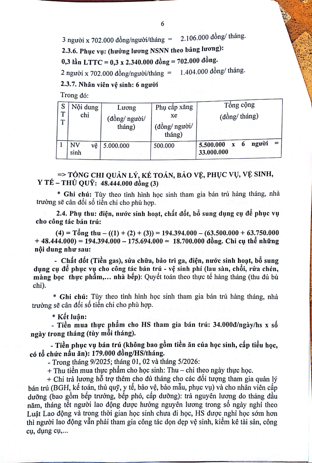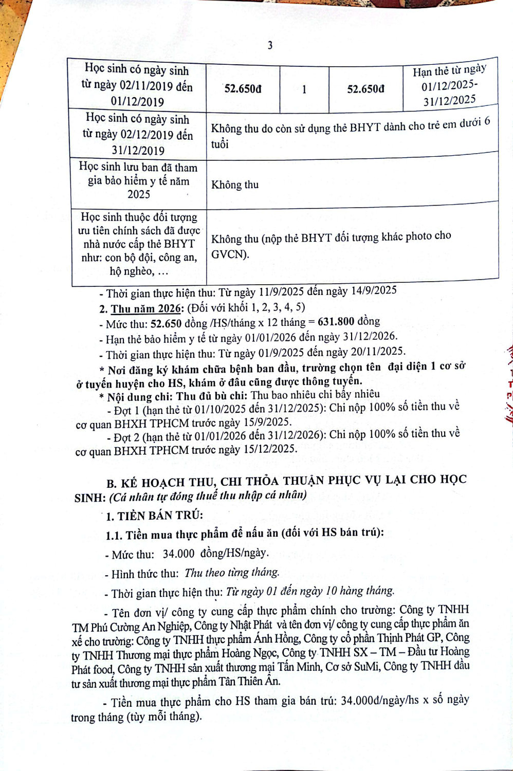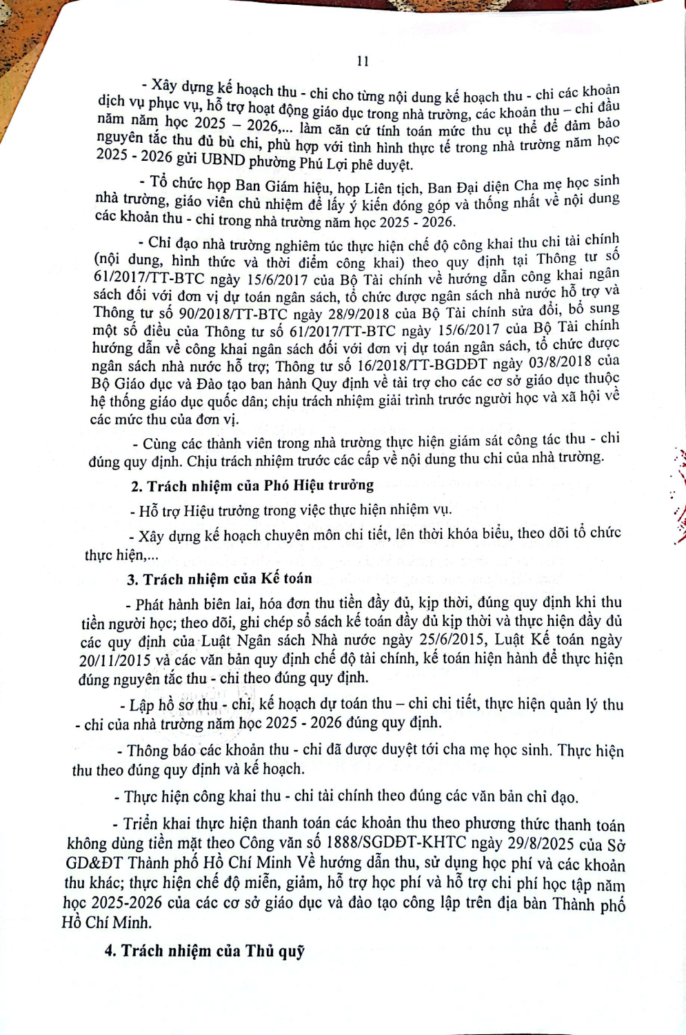 Kế hoạch thu - chi đầu năm học 2025-2026