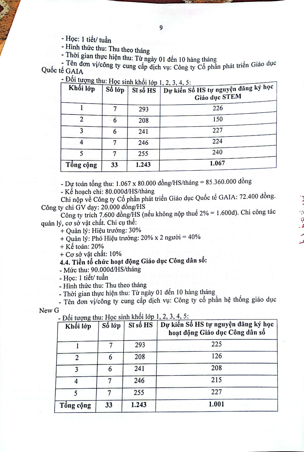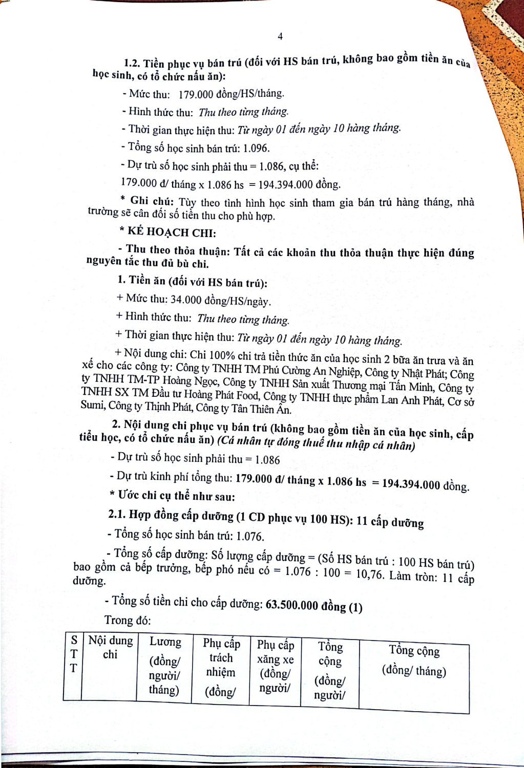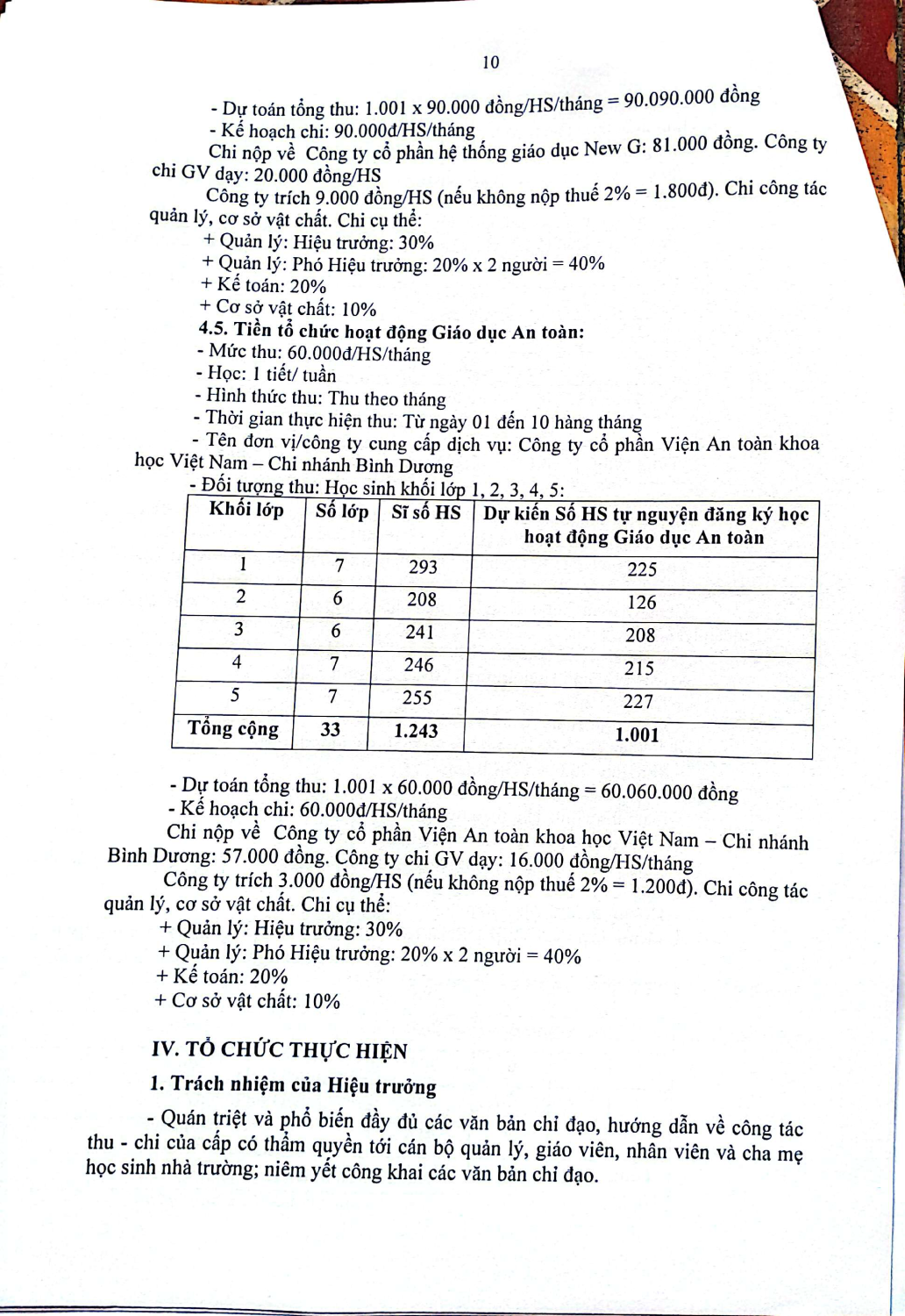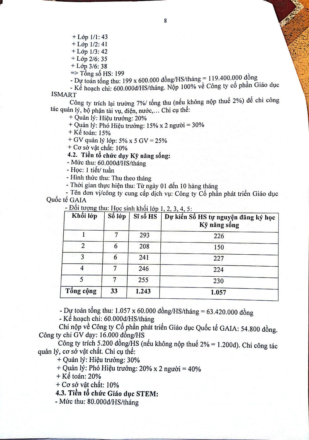 Kế hoạch thu - chi đầu năm học 2025-2026